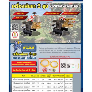 เครื่องพ่นยา เครื่องพ่นยาแรงดันสูง 3 สูบ FST ***อย่าลืมเติมน้ำมันเครื่องก่อนใช้งาน ที่ระดับครึ่งตาแมว*** ปั้มพ่นยา 3 สูบ ใช้งานได้อเนกประสงค์ เช่นใช้พ่นสารเคมี ยาฆ่าแมลง ยาฆ่าเชื้อโรค เหมาะสำหรับ ใช้ในสวนผัก ผลไม้ ไร่นา คอกปศุสัตว์ งานเกษตรกรรม และงานอุตสาหกรรม - ระบายความร้อนด้วยครีบรอบทิศทาง - ชุดเสื้อสูบอลูมิเนียม - ชุดซีลวาล์วกันน้ำเป็นสแตนเลส - ชุดหัวปั้มเป็นเหล็กหล่อ - ผลิตจากวัสดุชนิดพิเศษ - ทนต่อเเรงดันได้สูง แข็งแรงทนทาน