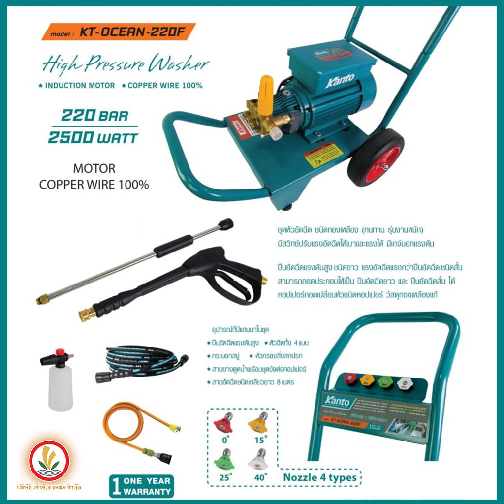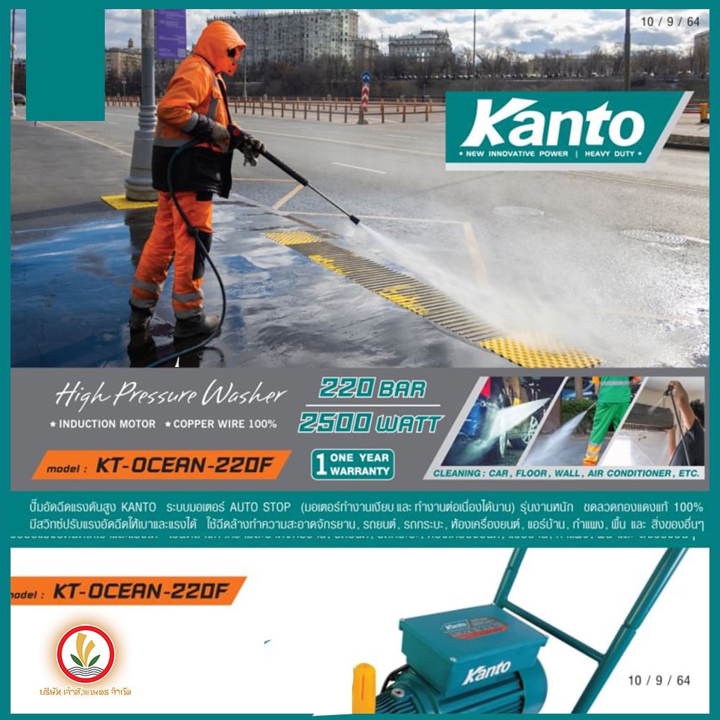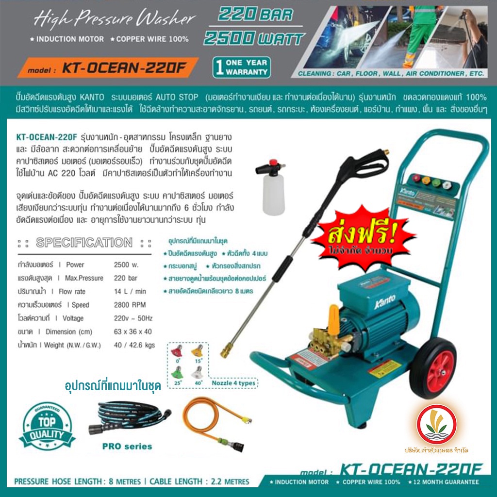 Kanto เครื่องฉีดน้ำแรงดันสูง รุ่น KT-OCEAN-220F 220 bar 2500w ปั๊มอัดฉีดแรงดันสูง KT OCEAN 220F เครื่องอัดฉีด