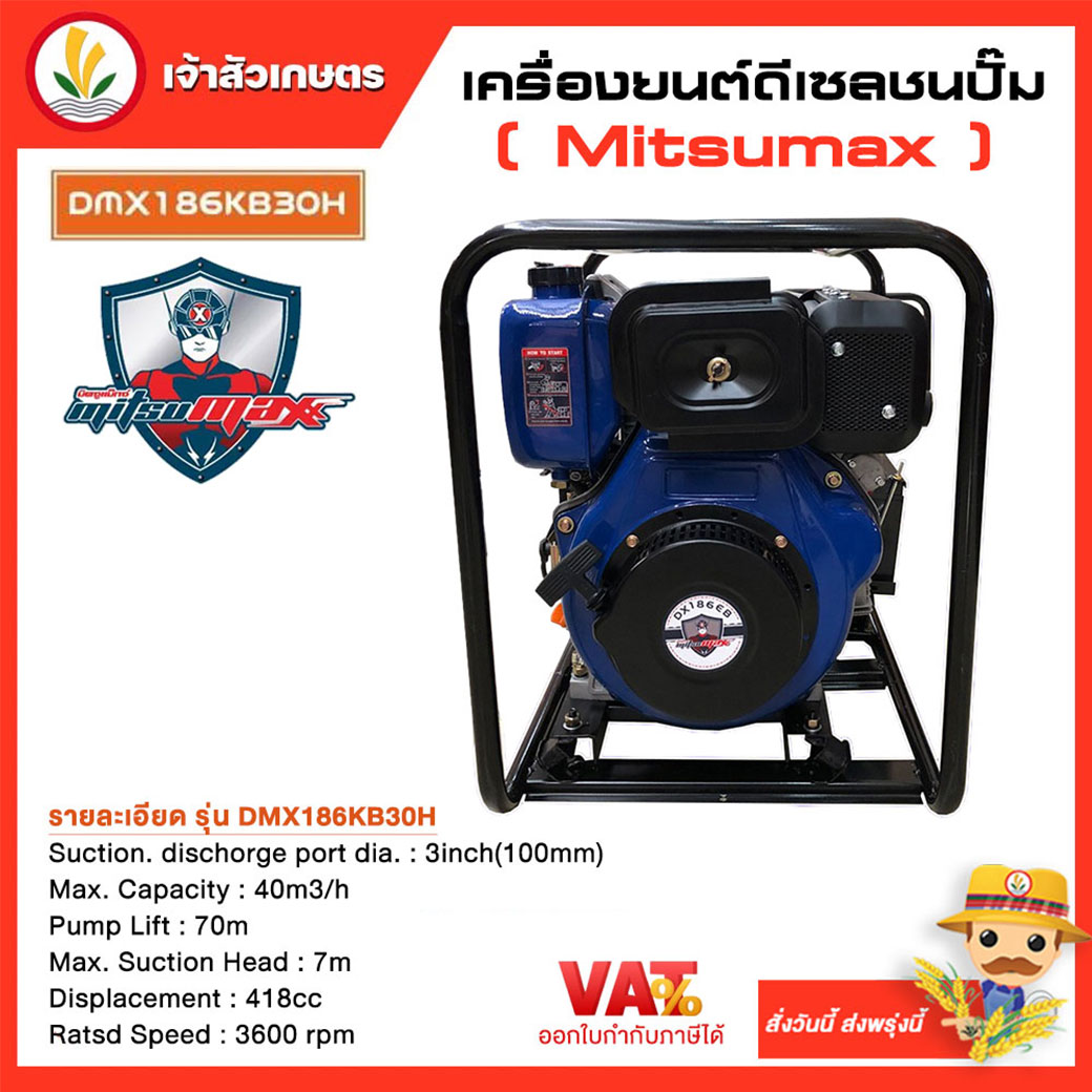 Mitsumax เครื่องยนต์ดีเซล รุ่น DMX186KB30H 10HP มิตซูแม็กซ์ พร้อมกุญแจสตาร์ท+แบต เครื่องชนปั๊ม เครื่องยนต์ชนปั๊ม