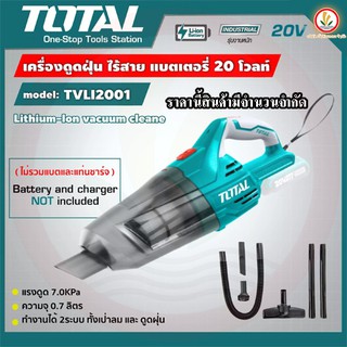 Total เครื่องดูดฝุ่น รุ่น TVLI2001 (แบบพกพา) ไร้สาย 20v ความจุ 0.7 ลิตร เครื่องดูดฝุ่นไร้สาย